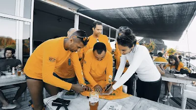 Шампањац, вечера, смех и дељење утисака били су савршен завршетак. Домаћинима са сплава оставили смо званичну мајицу регате са потписима свих учесника, као симбол овог незаборавног путовања.